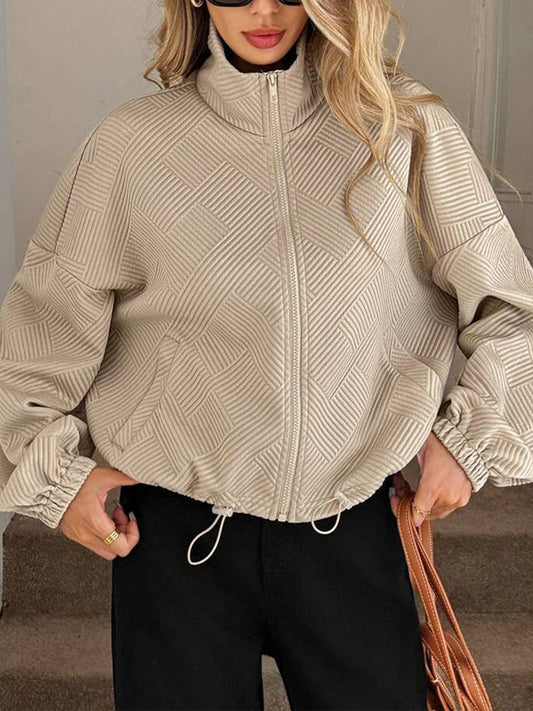 Turtleneck Zipper Drawstring Jacket