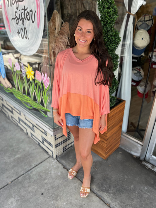 Colorblock 3/4 Sleeve Oversized Top