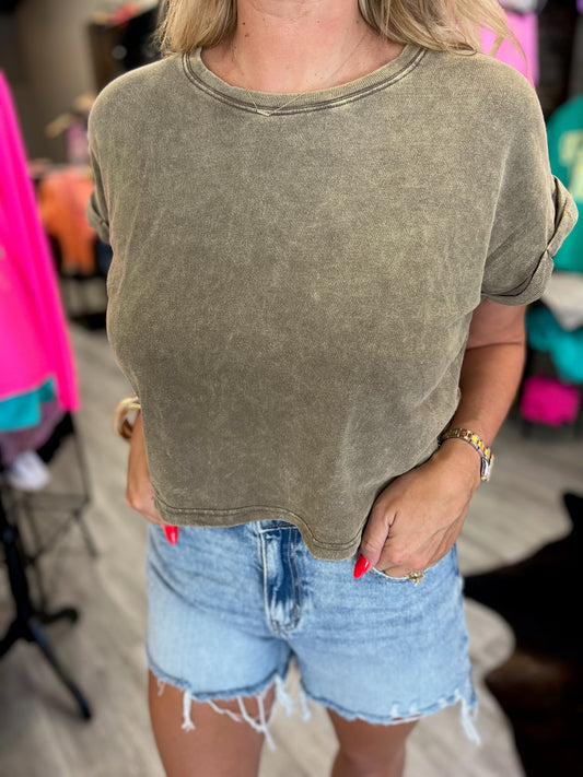 ',,, Washed Raw Edge Crop Top W/ Back Patch