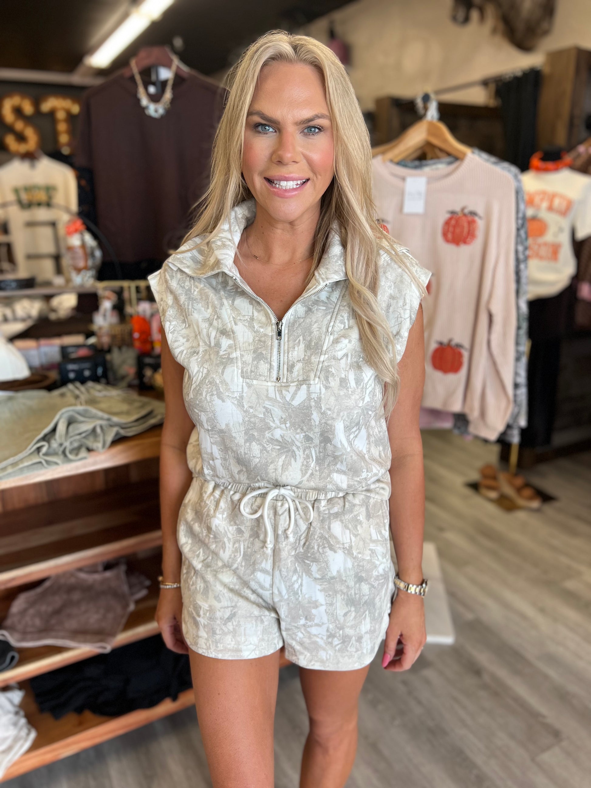 Camo half zip cropped sweatshirt slvls top and shorts set,-half zip , -cropped , -sweatshirt slvls , -top and shorts set, -casual, -sporty & rich,model's height is 5'7" and wearing a size S